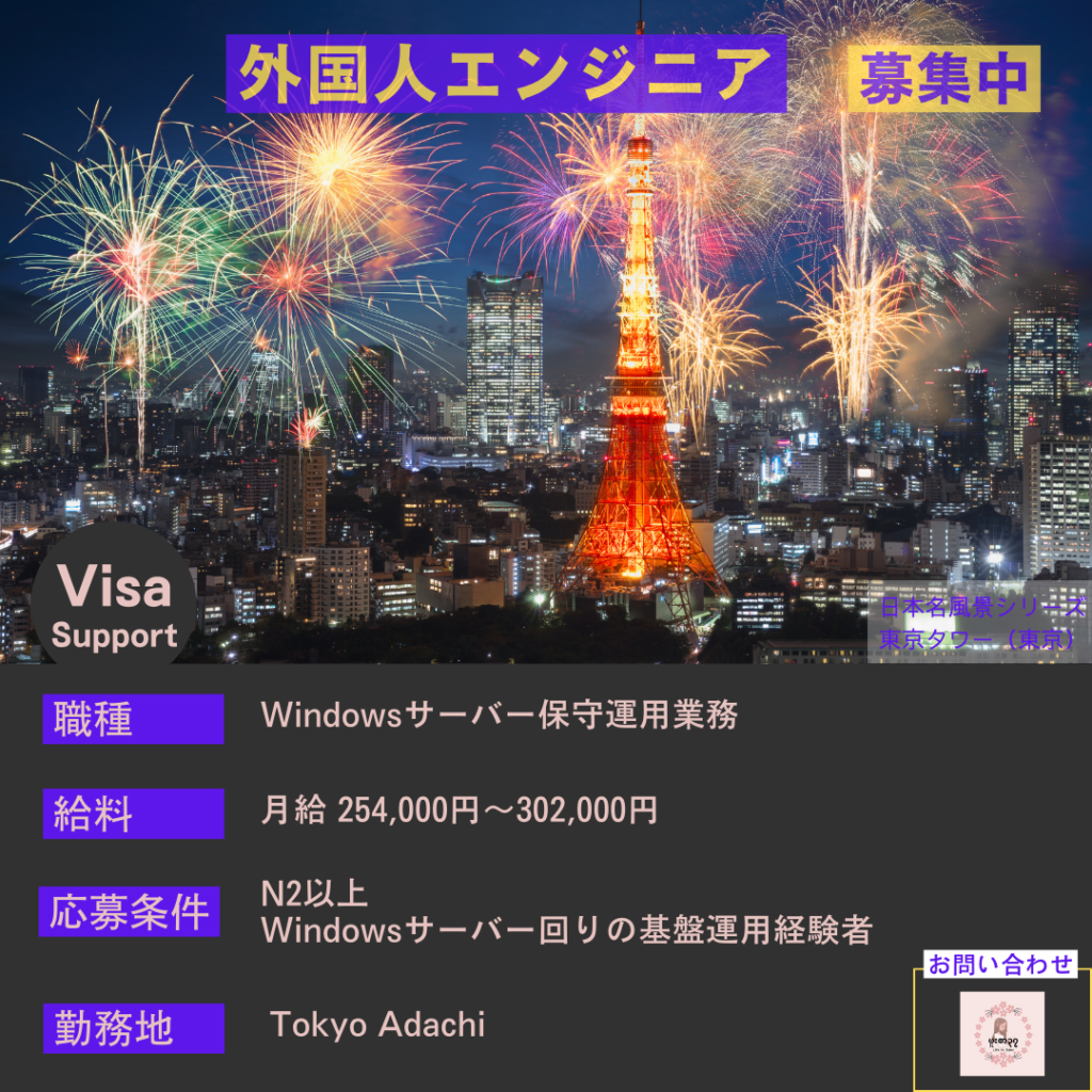 求人情報 Windowsサーバー保守運用業務求人 外国人エンジニア採用!東京勤務